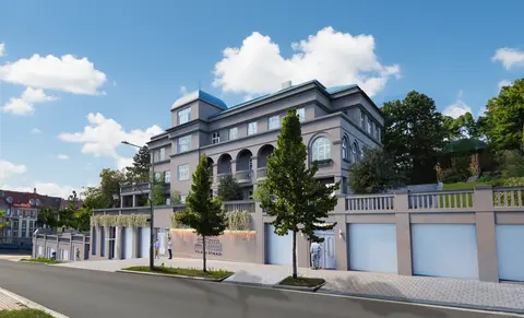 The four-story Vila Na Stráži features eight spacious apartments with layouts of 4-room, 4+1, and 5+1, ranging from 140 to 246 m². Each floor contains only two apartments, ensuring a high level of privacy. The ground-floor and first-floor units include generous terraces and private gardens, offering the comfort of a family home. An exclusive option is the ground-floor apartment with its own spa or fitness area and a 256 m² garden. Panoramic views from the upper floors highlight the blend of 1920s elegance with city energy. The project is scheduled for completion in Q3 2026.